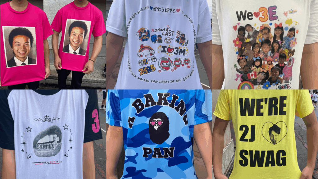 At Chukyo High School, each class makes its own uniform for the sports festival. These uniforms often have special meanings for the students. Some classes put their classmates ’ names or the sports they play, such as volleyball, table tennis, foot baseball, or softball. Others add lyrics from famous Japanese songs or even pictures of their homeroom teacher. Because each class chooses different ideas, we can see many unique themes during the festival. This makes the event more fun and meaningful for everyone.